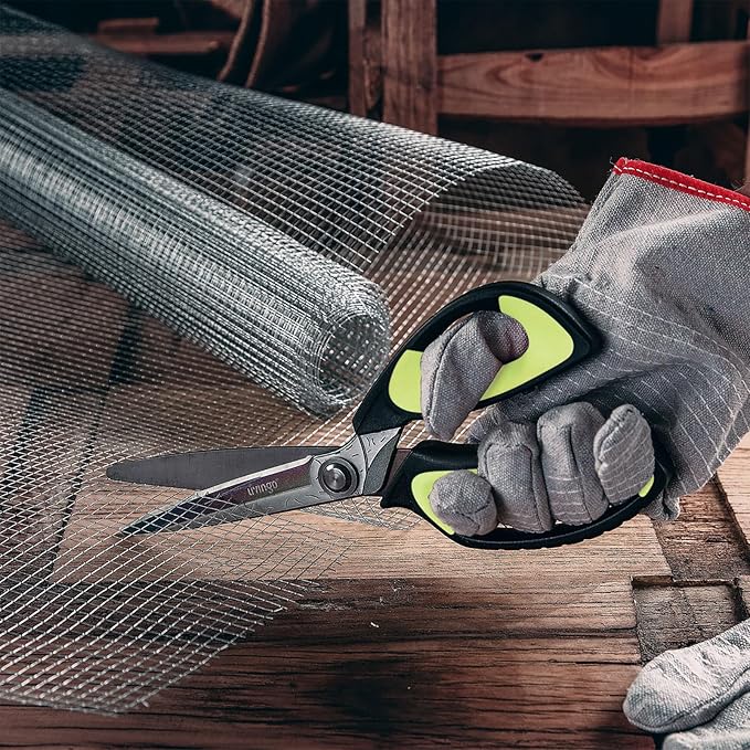 - LIVINGO Heavy Duty Industrial Scissors: Features stainless steel rust-resistant blades. The forging and stamping manufacturing process makes the steel denser and three times harder than regular stainless steel. It can help us to accomplish the shearing task more conveniently.