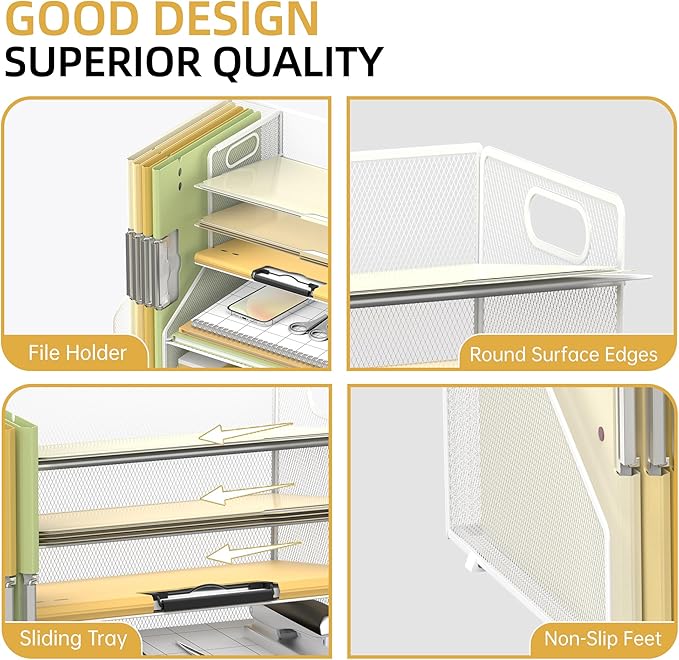 - [Capacity Structure] Our SUPEASY desk organizer features 5-tier inclined paper tray and 1 removable file holder. Not only is it large enough to hold all your office supplies and desk accessories, it also allows you to easily identify and access your office essentials, improving your work efficiency.
