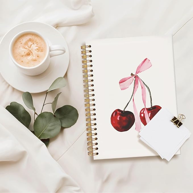 Coquette Pink Bow Cherry Notebook, Preppy Trendy Aesthetic Journal for Girls, Cute College Ruled Spiral Planner, Coquette School Supplies & Gifts for Women, 5.5x8.3 Inch