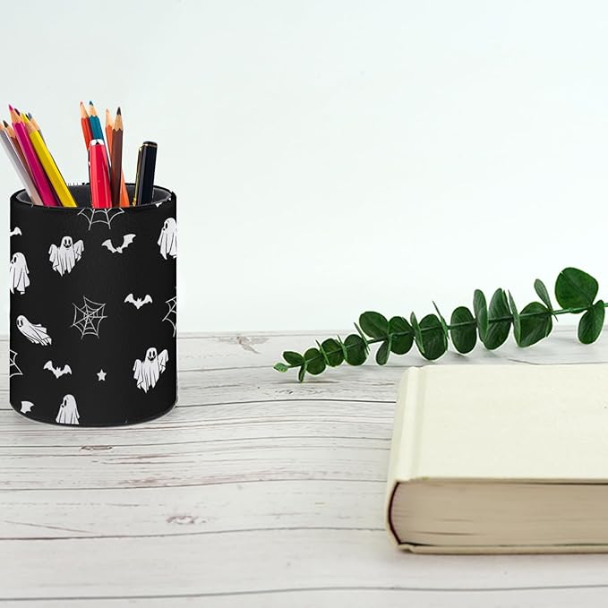 Halloween Spider Web Ghost Pen Holder Pencil Organizer Cute Pencil Cup Desk Decor Makeup Brush Holder PU Multifunctional Office Suppliesfor Home Classroom School