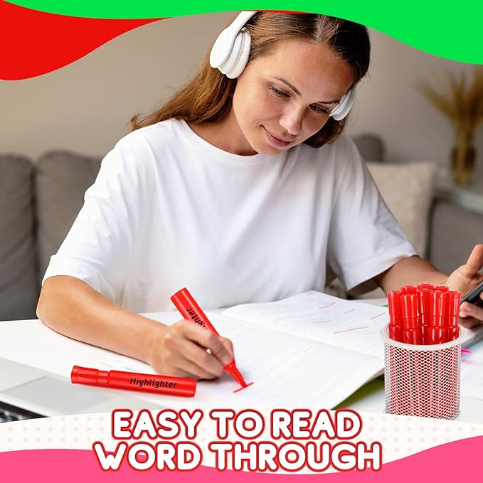 - Convenient Chisel Tip Design: our red highlighters come with a good chisel tip offering broad highlighting or fine underlining and allow you for creating thick and thin lines; Secure fitting caps can protect the tips when not in use