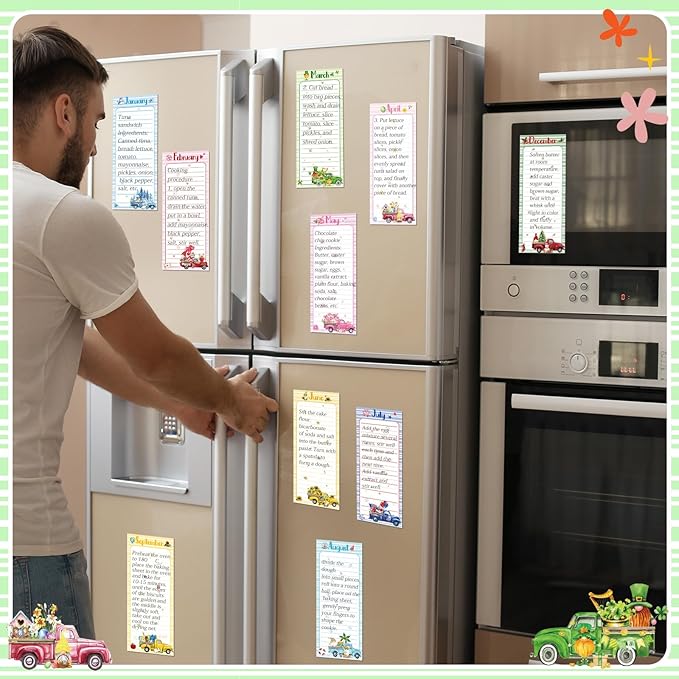 - Monthly Magnetic Grocery List: our seasonal magnetic notepads boast 12 monthly designs, each corresponding to a different month and festive theme, including Valentine's Day, Patrick's Day, Christmas, Thanksgiving, and more; These seasonal magnetic notepads are sure to enhance your kitchen decor while reminding you of the month to bring convenience to your life