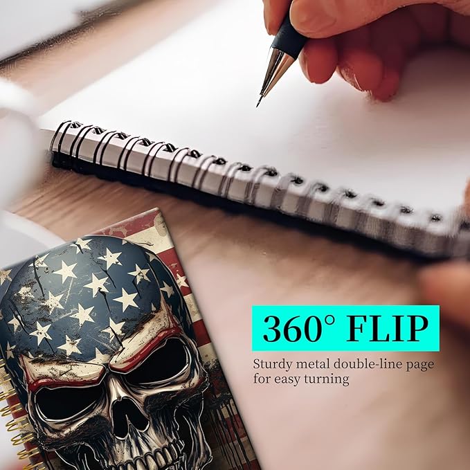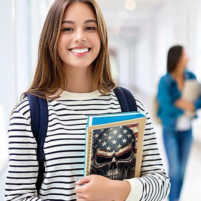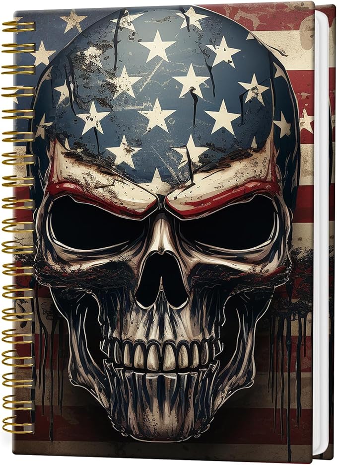 Spiral Notebook Journal for Women Men, A5 Hardcover Journal, 120 Pages Thick Paper, College Ruled Writing Notebook for School, Work & Office 8.3'' × 5.9''(Skull American Flag)