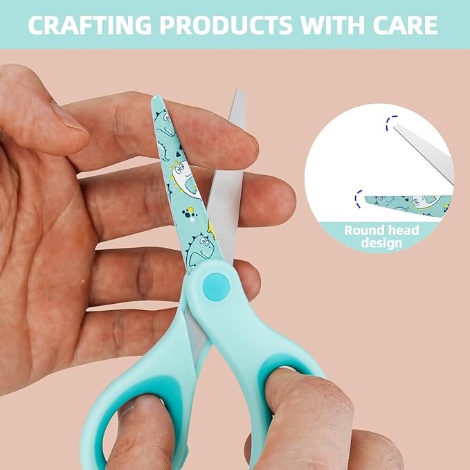 - 【SET CONTENTS】: 5-Inch Scissors For Kids,Soft Comfort-Grip Handles,There are bright colors,such as Blue,Pink,Green,Suitable for ages 4+.