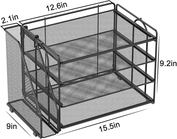 - ▶ Perfect fit: You can easily organize printed papers, letters, files, reports, folders, magazines, etc. Almost all office files are suitable for our desk organizer. The top paper tray is perfect for small flower pots, decorations, staplers, calculators and telephone stands