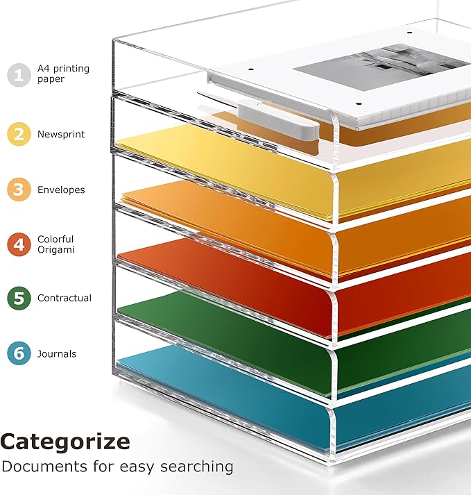 - Seamlessly Integrated Environmental File Sorter: Crystal clear trays allow you to quickly locate stored items and complement any decor! The modern look adds style to any office or home workspace!