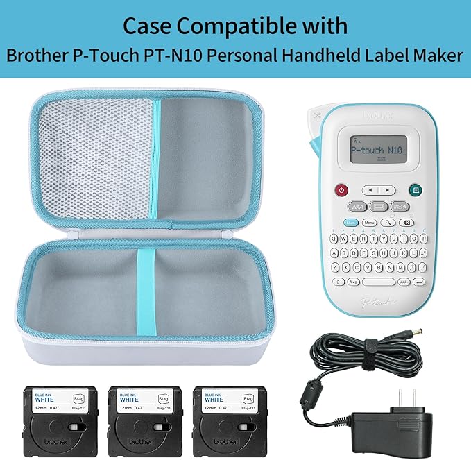 - Portability for the case: The storage compartment compatible with Brother P-Touch PT-N10 label make is equipped with a convenient hand strap, which is compact in size and easy to carry to school, park or anywhere else. It can also be placed in a backpack car seat and handbag when going out. Notice! Only Case! ! Brother P-Touch PT-N10 label make and other accessories are not included