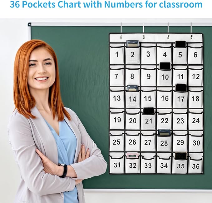 - 【36 Numbered Cell phones Pocket Chart】This 36 numbered pocket charts for cell phones, 36 clear number printing it is easy for students to find their own cell phones and calculator. Let students focus more on learning. avoid distractions when using mobile phones in school classrooms and dormitory libraries.