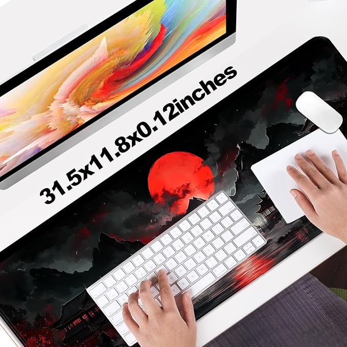 - 【Size】: 31.5x11.8x0.12 inches, the large gaming extended mouse pad mat provide enough space for your mouse to movement, 3mm thickness ensures its shape stability, mousepad is soft, comfortable, lightweight, can be rolled up and easy to carry.