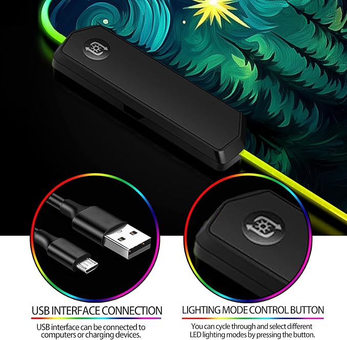 - 【RGB LED LIGHTING】: The RGB mouse pad features built-in colorful LED lighting, offering 12 lighting effects and colors. You can customize your preferred lighting mode using the control button.