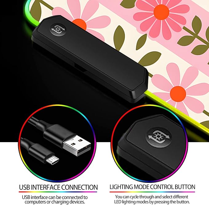 - 【CONVENIENT USB INTERFACE】: Simply plug the RGB mouse pad into an available USB port on your computer to instantly activate vibrant LED lighting, adding vivid visual effects to your work and entertainment experience.