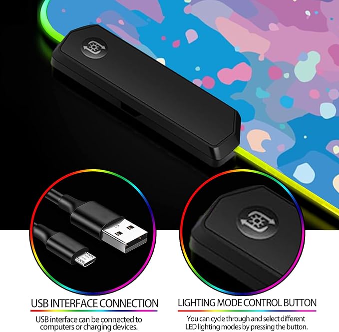 - 【CONVENIENT USB INTERFACE】: Simply plug the RGB mouse pad into an available USB port on your computer to instantly activate vibrant LED lighting, adding vivid visual effects to your work and entertainment experience.