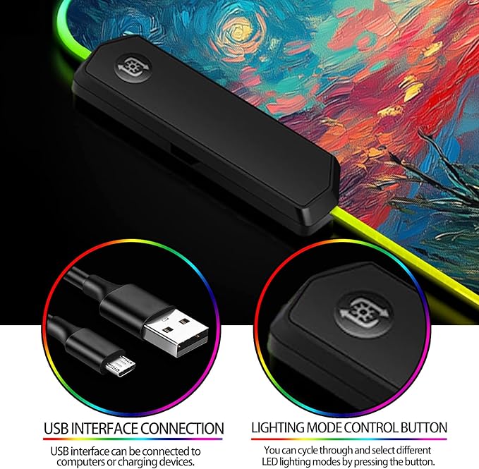 - 【RGB LED LIGHTING】: The RGB mouse pad features built-in colorful LED lighting, offering 12 lighting effects and colors. You can customize your preferred lighting mode using the control button.