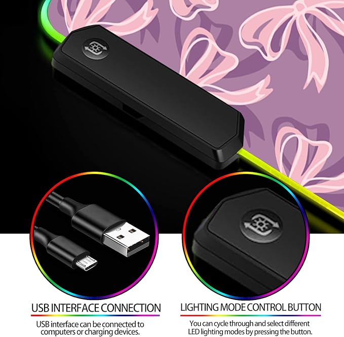 - 【CONVENIENT USB INTERFACE】: Simply plug the RGB mouse pad into an available USB port on your computer to instantly activate vibrant LED lighting, adding vivid visual effects to your work and entertainment experience.