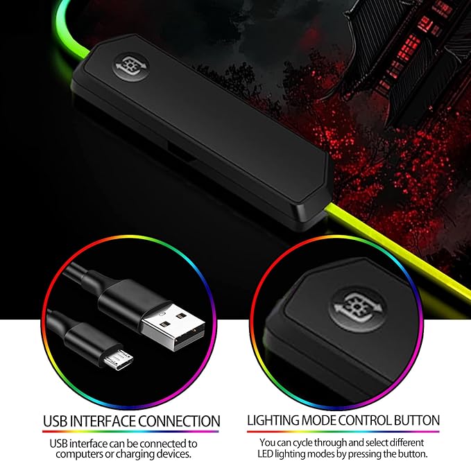 - 【RGB LED LIGHTING】: The RGB mouse pad features built-in colorful LED lighting, offering 12 lighting effects and colors. You can customize your preferred lighting mode using the control button.