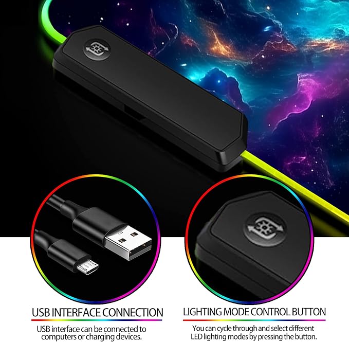 - 【CONVENIENT USB INTERFACE】: Simply plug the RGB mouse pad into an available USB port on your computer to instantly activate vibrant LED lighting, adding vivid visual effects to your work and entertainment experience.