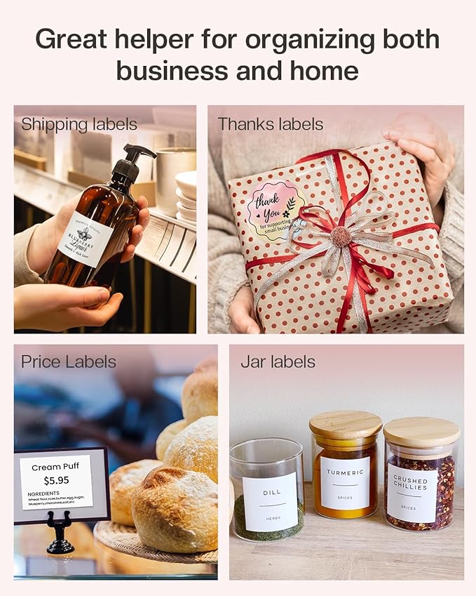 - 【Widely Used in Business and Home】This wireless label printer can support the width of 1 - 4.6 inches labels, which is widely used to print shipping labels, barcode/postal/mailing/address/panrty labels, price tag, thank you labels. Whether you’re running a small business or want to get organized at home, it's a practical choice.