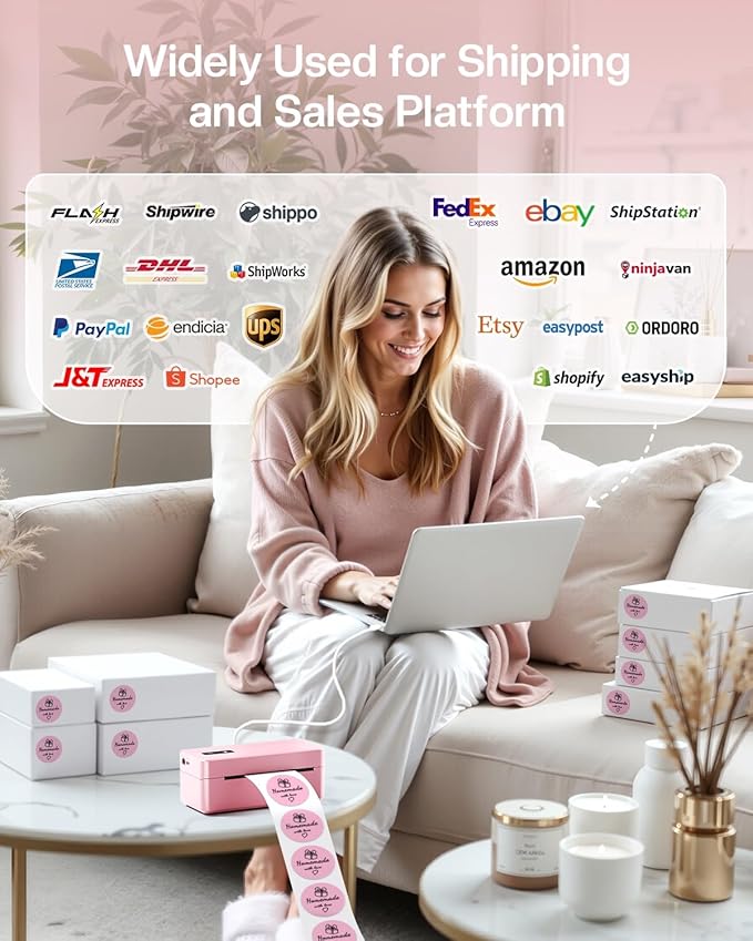 - 【 Strong Platform Compatibility 】 The 2410BT label printer for small business essentials is used for shipping parcels and it works seamlessly with platforms like eBay, Shopify, Tiktok, Amazon, Etsy, Poshmark, UPS, USPS, FedEx, ShipStation, DHL, Shippo, and more.