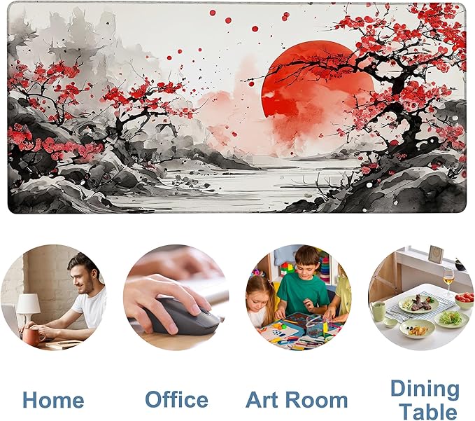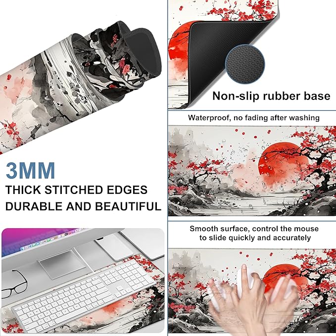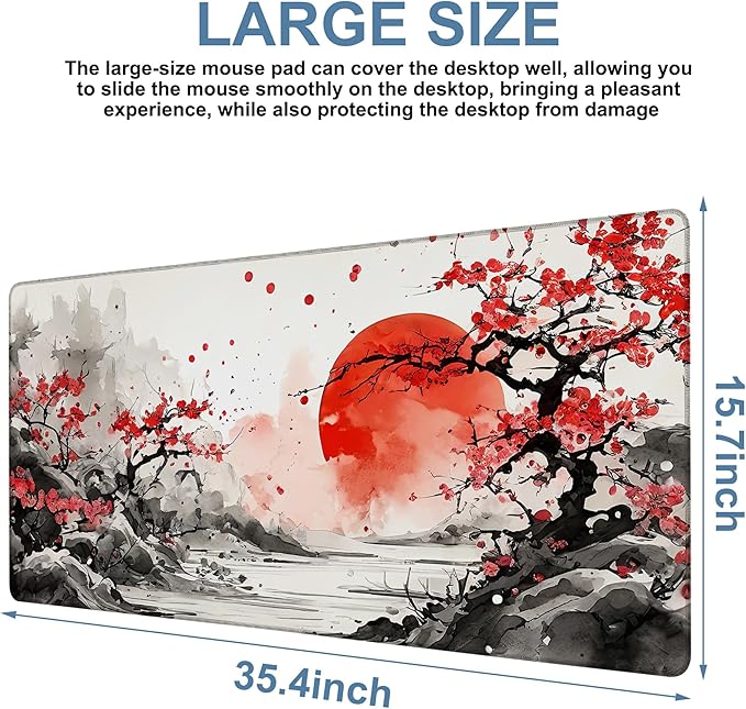 Large Mouse Pad Ink Painting Gaming Desk Pad Computer Keyboard Non-Slip Waterproof Mouse Mat with Rubber Base and Stitched Edges Entertainment Office Writing Desk Mat 35.4 x 15.7 Inches