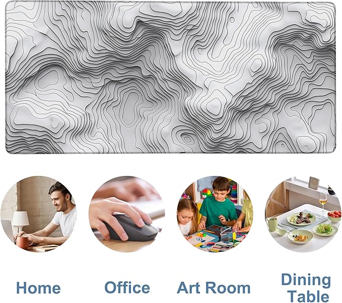 - Extra Large Size:The keyboard mouse mat measures 35.4 x 15.7 inches,with a large size design.The desk mat can cover most of the desktop area,enough to accommodate a computer,keyboard and other desktop items.The large size desk pad can better protect the desktop.Suitable for daily use,work and games
