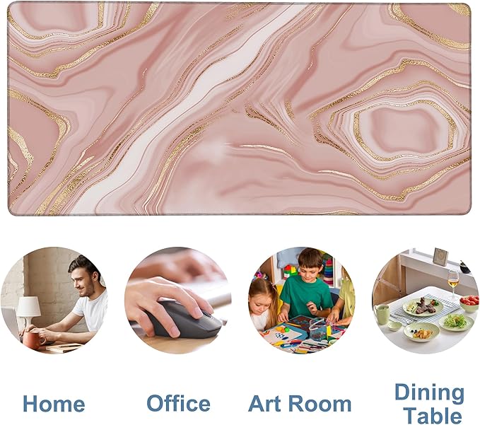 - Extra Large Size:The keyboard mouse mat measures 35.4 x 15.7 inches,with a large size design.The desk mat can cover most of the desktop area,enough to accommodate a computer,keyboard and other desktop items.The large size desk pad can better protect the desktop.Suitable for daily use,work and games