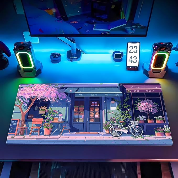 Kawaii Desk Mat Anime Aesthetics Mouse Pad Large Gaming Mouse Pads XL Computer Mat Pink Cherry Blossoms Mousepad Warm and Cute Japanese Keyboard Pad 31.5 x 15.7 Inch Desktop Gaming Pad