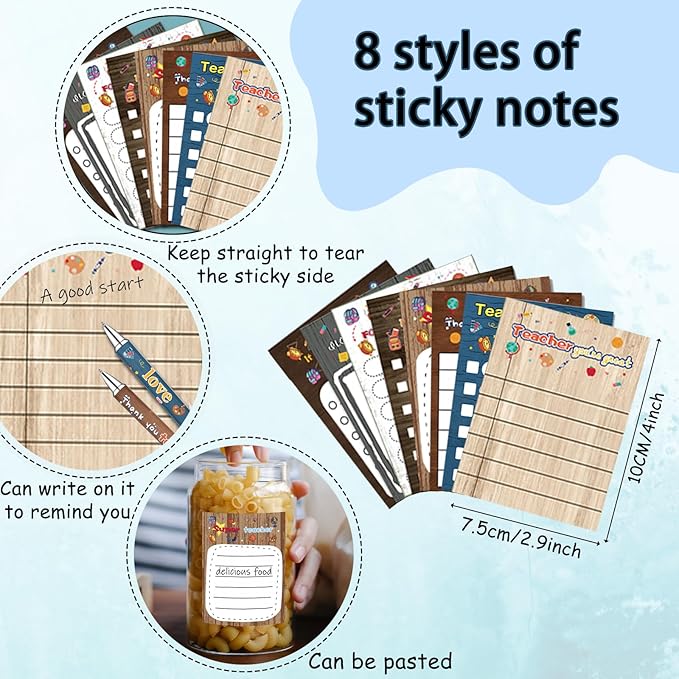 - Teacher Gift Set – This set includes 16 colorful sticky notepads (2 pads/design). A thoughtful and practical gift to celebrate teachers and show gratitude.