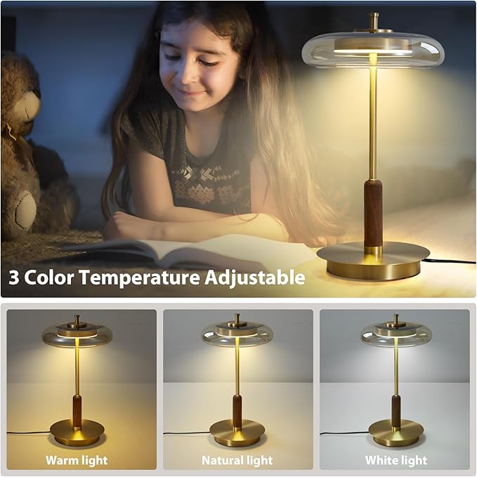 - 【Table Lamp】The table lamp base is made of high-quality brass, finely polished and treatment, with mushroom-shaped umbrella-shaped high-transmittance glass lampshade, delicate texture, Classic and modern design style,suitable for Nordic style, industrial style, pastoral style and other home styles.