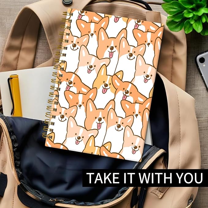 Spiral Journal Notebook, Hardcover Lined Journal for Women, Medium 6 x 8.4 in, 120 Pages Thick Paper, College Ruled Notebook for Writing, Work, Office, and School,Cartoon Corgi Dog