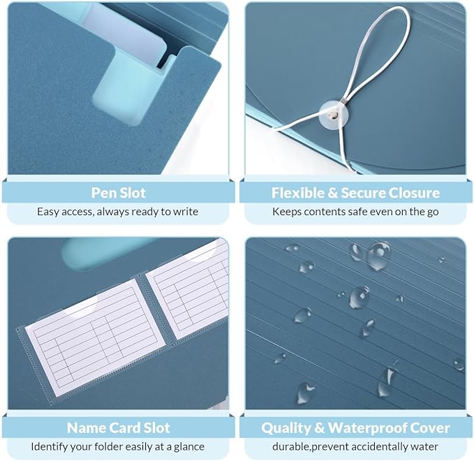 - 13-Pocket Organizer:Designed with a minimalist mist blue finish, this folder offers a clean, professional look ideal for work, meetings, or travel. The 13 accordion-style pockets fit both letter-size and A4 paper with ease.