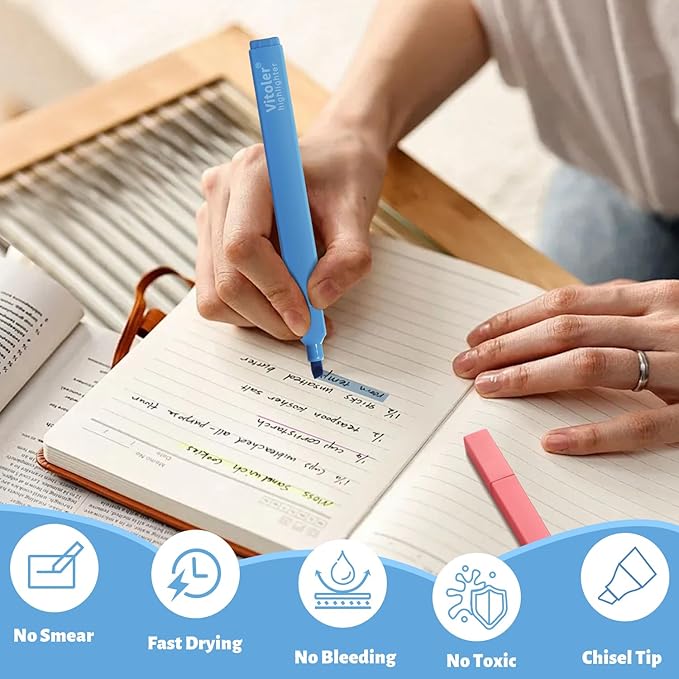 - Multi-Applications & Great Gift: The highlighters package is a great choice for school supplies or office supplies, also suitable for college, home, office, even travel diary, schedule, work, study, notes, etc. These aesthetic highlighters are also wonderful gifts for teachers, classmates, bosses, coworkers, and so on.