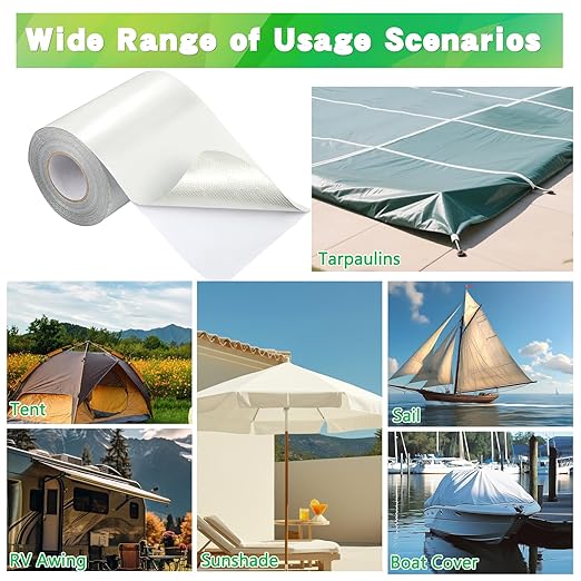 - ใ๐๐๐ฉ๐๐ข๐ซ๐ข๐ง๐ ๐ ๐๐๐ซ๐ข๐๐ฌ ๐๐ง๐ ๐๐ฐ๐ง๐ข๐ง๐ ๐ฌ ๐ฐ๐ข๐ญ๐ก ๐๐๐ฌ๐ใOur 4.5-inch wide repair tape is the ultimate solution for damaged fabric surfaces. Whether it's your canvas, tent, camper awning, leather goods, boat cover, tarps, sail, umbrella, or plastic film, this tape will restore them to their former glory. It even doubles as reinforced strapping tape and packaging tape for a variety of applications.