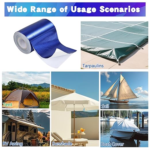 - ใ๐๐๐ฉ๐๐ข๐ซ๐ข๐ง๐ ๐ ๐๐๐ซ๐ข๐๐ฌ ๐๐ง๐ ๐๐ฐ๐ง๐ข๐ง๐ ๐ฌ ๐ฐ๐ข๐ญ๐ก ๐๐๐ฌ๐ใOur 4.5-inch wide repair tape is the ultimate solution for damaged fabric surfaces. Whether it's your canvas, tent, camper awning, leather goods, boat cover, tarps, sail, umbrella, or plastic film, this tape will restore them to their former glory. It even doubles as reinforced strapping tape and packaging tape for a variety of applications.