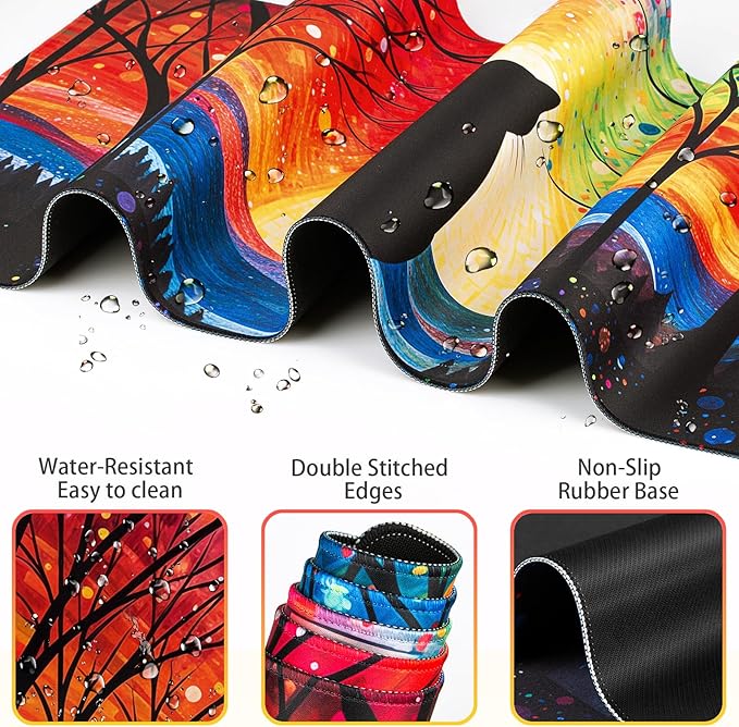 - 【Waterproof Exquisite Gift】:The surface of the keyboard pad has a waterproof coating,which can effectively prevent coffee and drinks from seeping into the mouse mat.Dust,grease and dirt can be easily cleaned with a wet cloth or washing machine.The personalized printed pattern of the large desk mat is exquisite and durable,making it an excellent gift for family,friends and oneself.