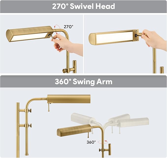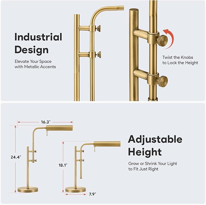 - Fully Adjustable Design: With an adjustable height ranging from 18.1 to 24.4 in., a 360° swing arm, and a 270° swivel head, this LED desk lamp is designed to meet all your lighting needs—from cozy reading nooks to office workstations
