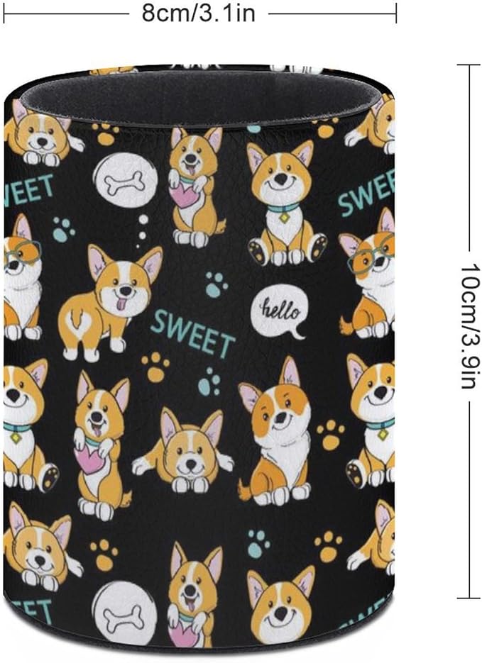 Cute Corgi Pen Holder Pencil Organizer Cute Pencil Cup Desk Decor Makeup Brush Holder PU Multifunctional Office Suppliesfor Home Classroom School