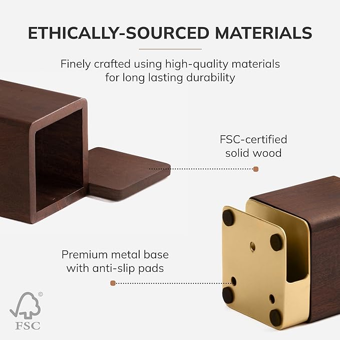 Anji Mountain Mango Wood Pen Holder with 2 Coasters, Stained Wood & Powder Coated Metal Pen Holder, Sustainable Room Decor Desk Organizer, Stylish Designer Pencil Case for Office Supplies