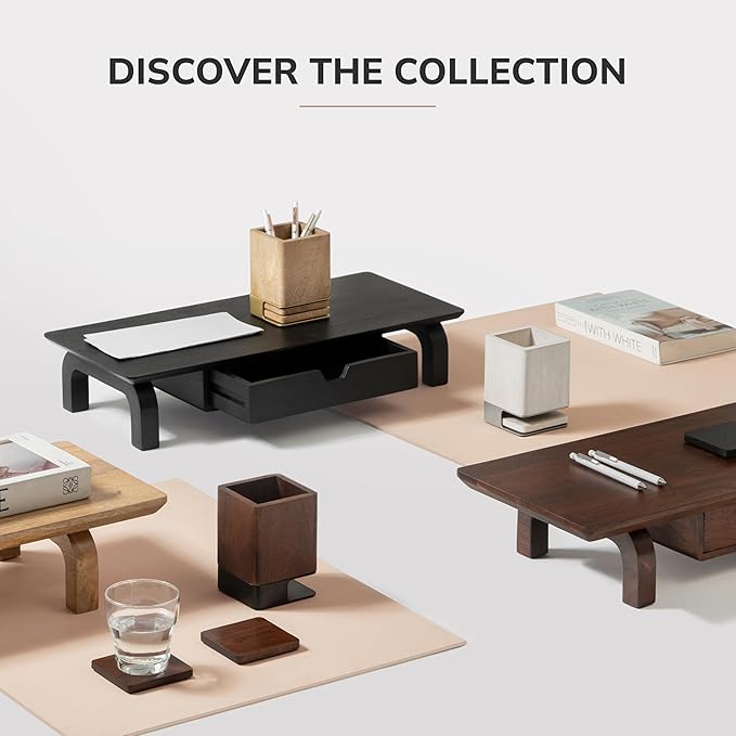 - Elegant Desk Accessories: Crafted from sustainable mango wood, this wooden pen cup and coasters set enhances office desk accessories with its sleek design, offering a refined touch to any office desk environment.