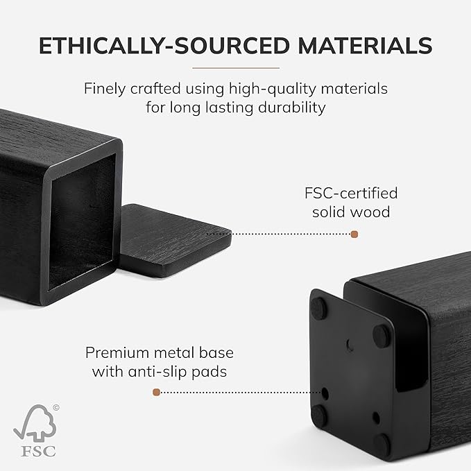 Anji Mountain Mango Wood Pen Holder with 2 Coasters, Stained Wood & Powder Coated Metal Pen Holder, Sustainable Room Decor Desk Organizer, Stylish Designer Pencil Case for Office Supplies