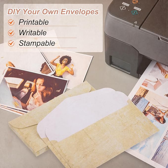 - These envelopes are printer-friendly so you can use different fonts and designs to personalize your mail.