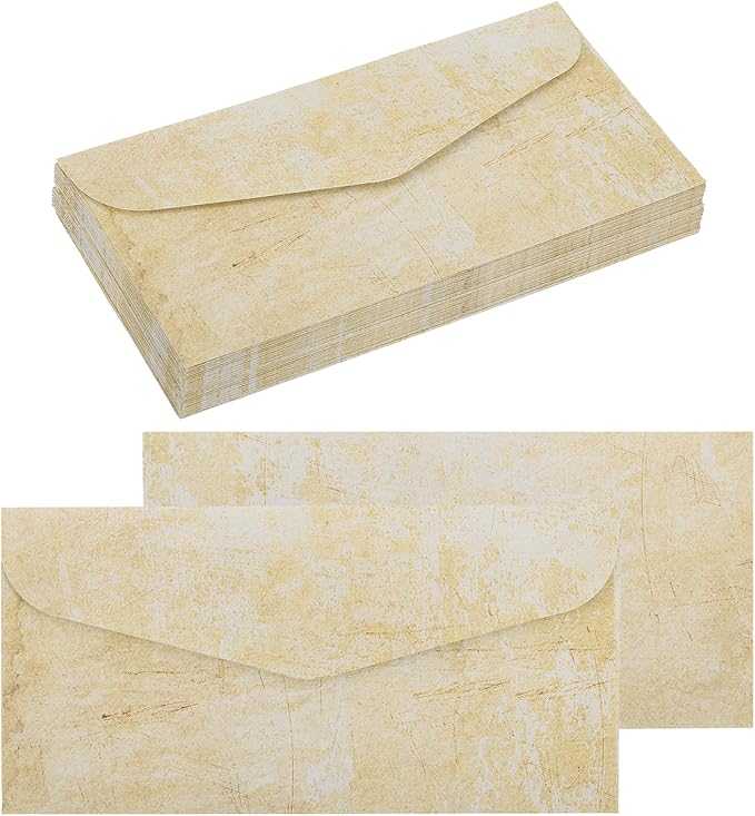 MECCANIXITY 48 Packs Envelopes Vintage Stationery Beige Linear Stationery Old Fashion Paper for Letter Writing, Invitations, Wedding-9 x 4 Inch