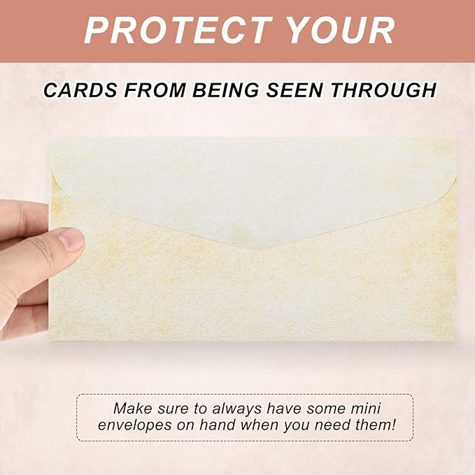 - The wedding envelopes are made of paper with moderate thickness, not easy to tear, sturdy enough to meet your most needs of holding various cards.Bulk pack is great to make sure you always have one of these mini envelopes handy.