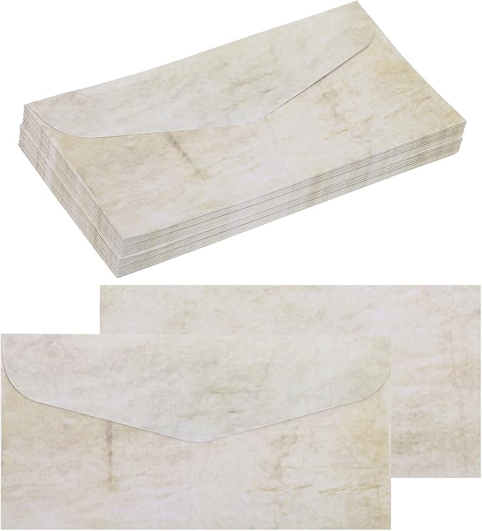 MECCANIXITY 48 Packs Envelopes Vintage Stationery Gray Black Lines Stationery Old Fashion Paper for Letter Writing, Invitations, Wedding-9 x 4 Inch