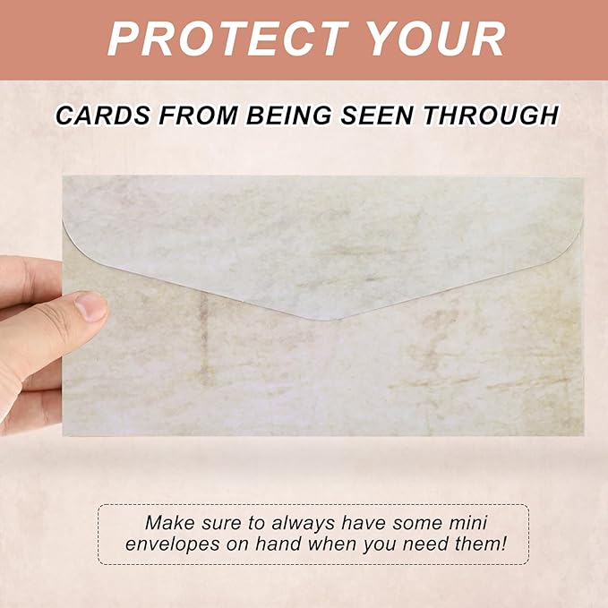- The wedding envelopes are made of paper with moderate thickness, not easy to tear, sturdy enough to meet your most needs of holding various cards.Bulk pack is great to make sure you always have one of these mini envelopes handy.