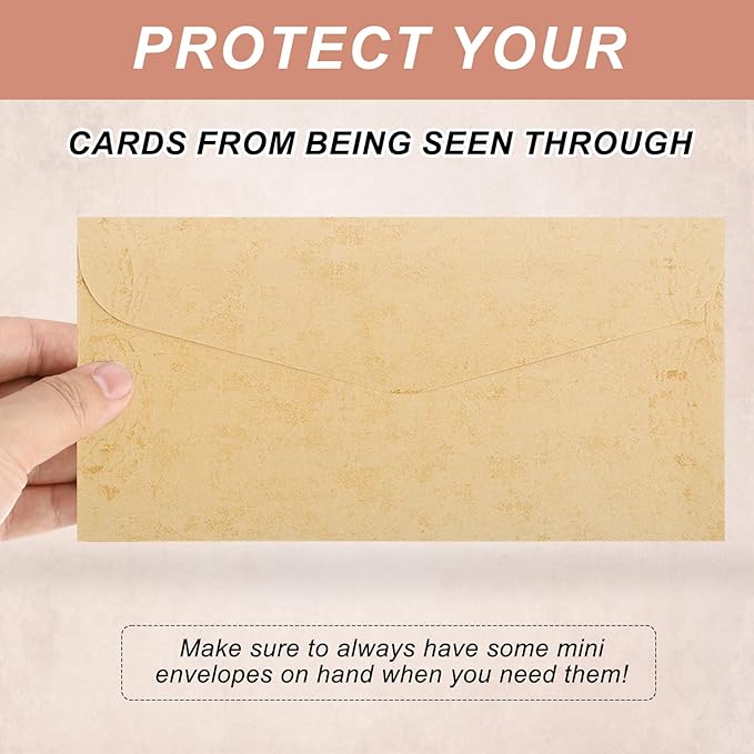 - The wedding envelopes are made of paper with moderate thickness, not easy to tear, sturdy enough to meet your most needs of holding various cards.Bulk pack is great to make sure you always have one of these mini envelopes handy.