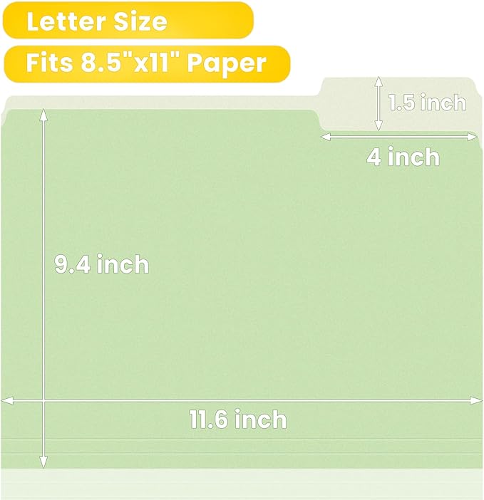 - 1/3 Cut Tab: Effortlessly navigate your files with the 1/3 cut file folder tabs design. This feature allows for clear labeling, making it simple to organize and access your documents efficiently. Keep your office tidy and organized with these easy-to-use folders.