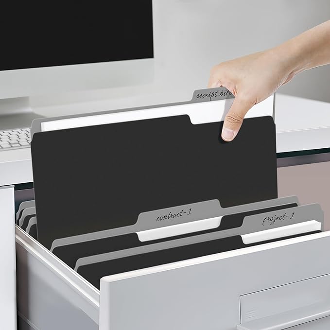 - Ideal Choice: These bright black file folders make a great choice for easy labeling and organization. File folders for documents are ideal for neatly managing invoices, reports, or individual documents, ensuring everything is neatly in place.