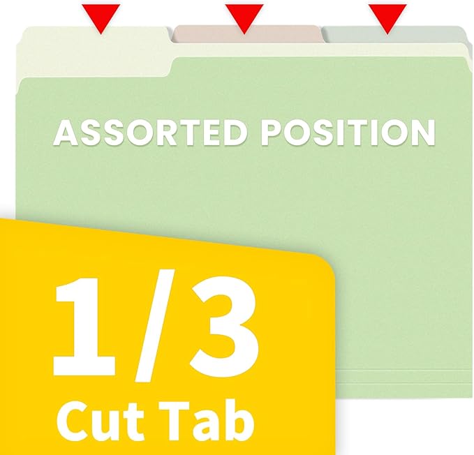 - 1/3 Cut Tab: Effortlessly navigate your files with the 1/3 cut file folder tabs design. This feature allows for clear labeling, making it simple to organize and access your documents efficiently. Keep your office tidy and organized with these easy-to-use folders.