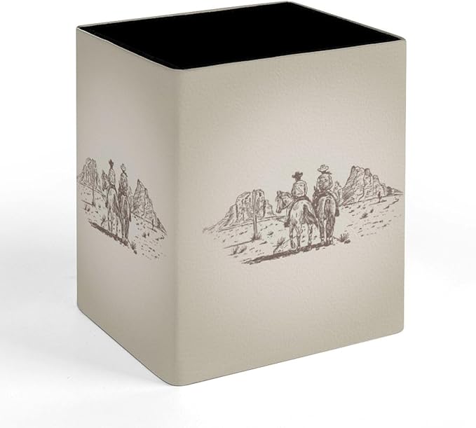 Square Pen Holder & Pencil Organizer for Desk - Office Storage Organizer , Markers/Makeup Brushes/Scissors Holder, Compact Desk Decor Accessories for Home Classroom School(Western Desert Cowboy)