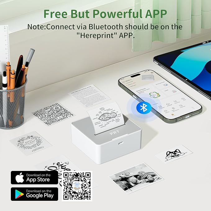 - Bluetooth Printer: this sticker printer supports Bluetooth connection, supports iOS and Android connection, you can print from your phone or tablet, the connection is smooth, the printing process is not a paper jam